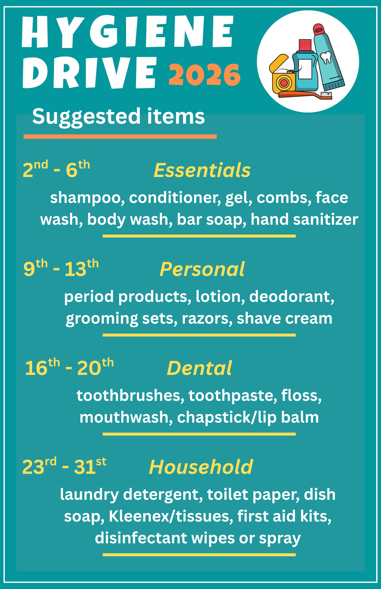 Join Communities in Schools for their Annual Hygiene Drive during all of March! Break barriers for students and families by donating hygiene products!